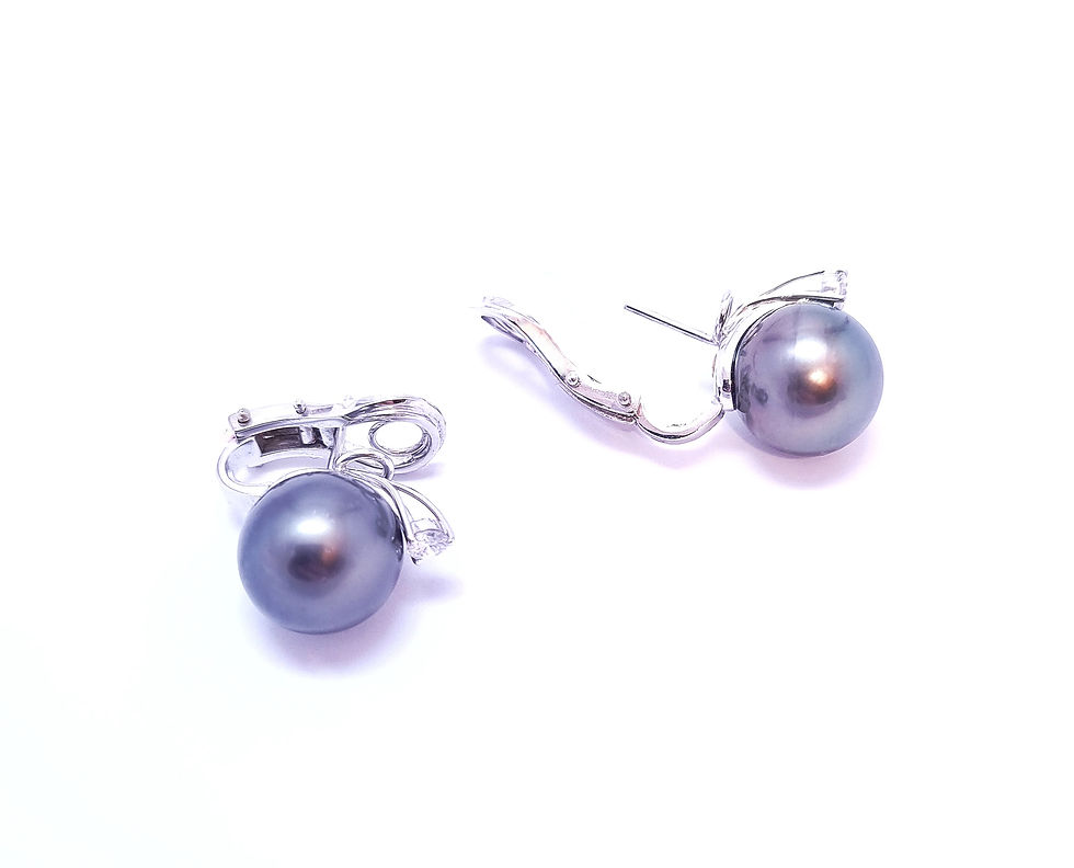 Tahiti Pearls Earrings in 18K White Gold and Diamonds